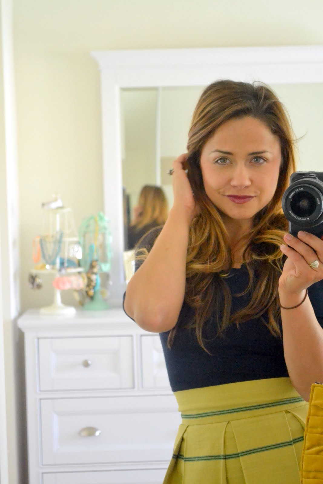 I once heard a rumor that Mariah Carey had her two bottom ribs removed so that she could fit into clothes better...or was it Janet Jackson? On either account, I fit into that category of girls with an extra large rib cage.  Put it this way, in middle school my ribs protruded further than my tatas--and it was cause for some major juvenile teasing. Which may be why I am totally stoked that high waisted skirts are back in. They give me some semblance of a waist and they totally hide the post baby pooch that every old man at church mistakes for a preggo bump, not cool.